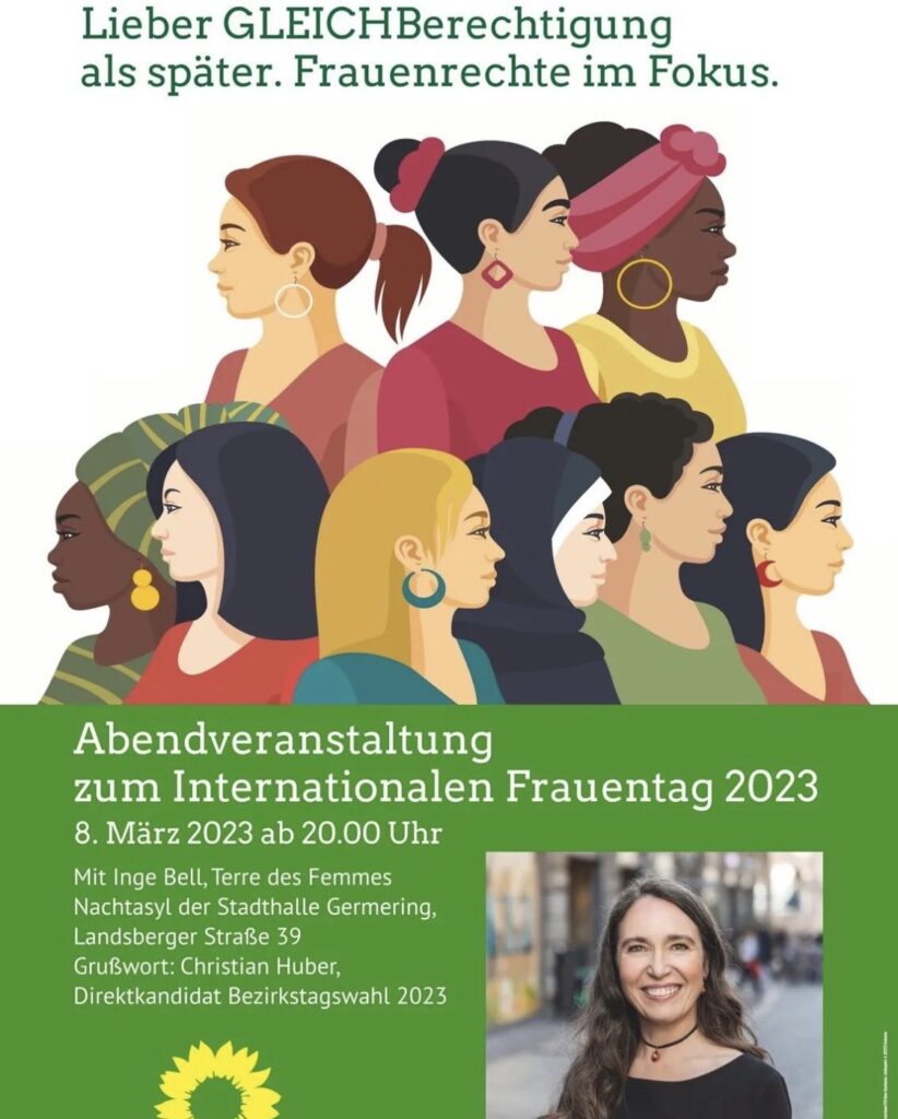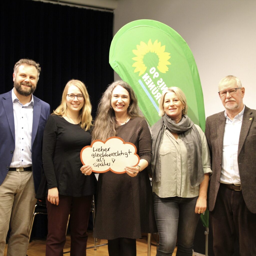 Nach der Brezenverteilaktion am Morgen fand abends unter dem Motto „Lieber GLEICHberechtigt als später“ die Veranstaltung des Grünen Kreisverbands in der Stadthalle Germering statt.
